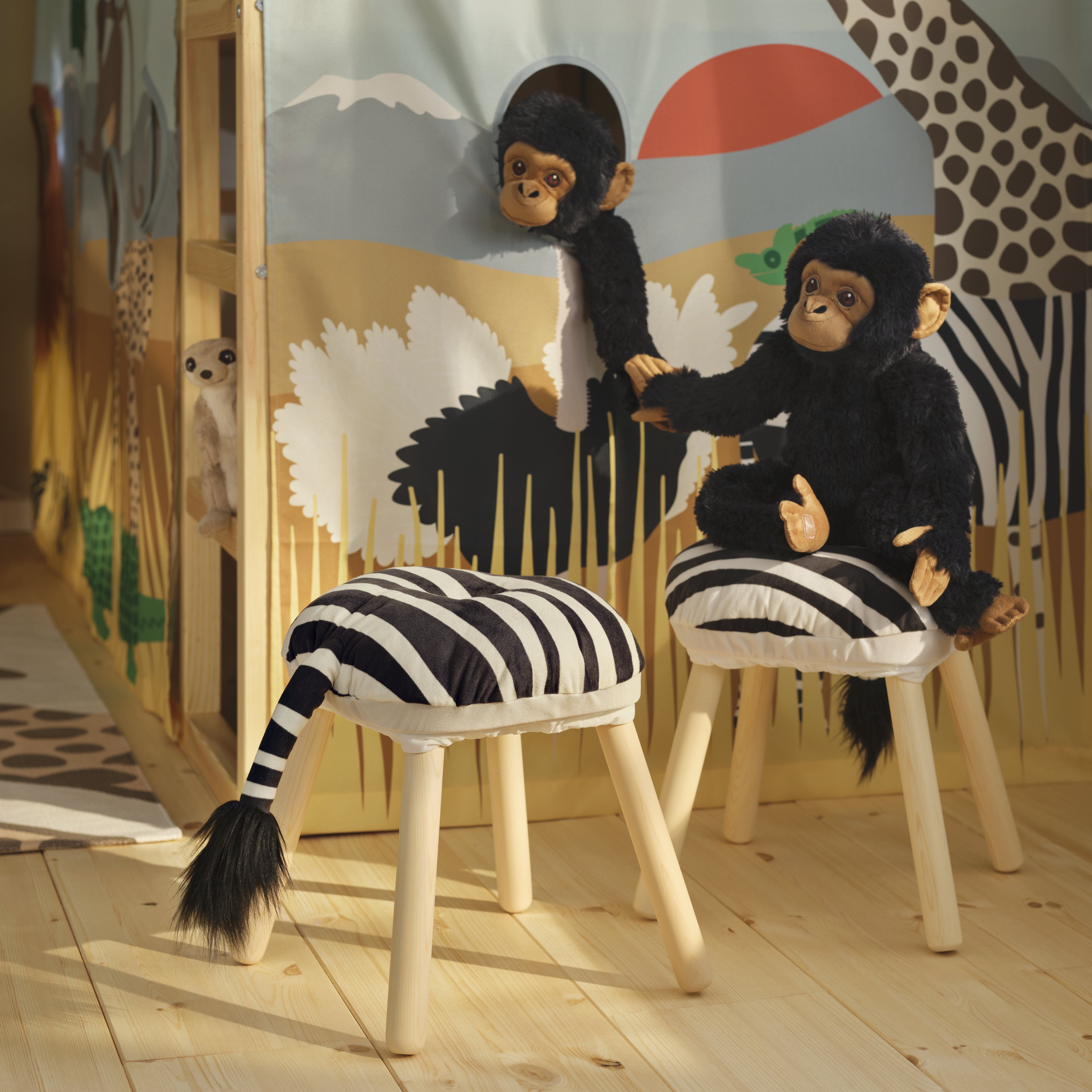 D’après le IKEA Play Report 2024, seuls 51 % des enfants sont satisfaits du temps dont ils disposent pour jouer, et 54 % des parents aimeraient avoir davantage de temps pour jouer avec leurs enfants. Avec les 29 produits de la collection SANDLÖPARE, IKEA entend stimuler l’imagination et favoriser les jeux de rôle dans le quotidien des petits (et grands) enfants. Les tabourets deviennent des zèbres, les tapis des serpents, et toute la chambre se transforme en un campement au cœur de la savane grâce au tapis ludique, à la boîte de rangement et aux peluches en embuscade.